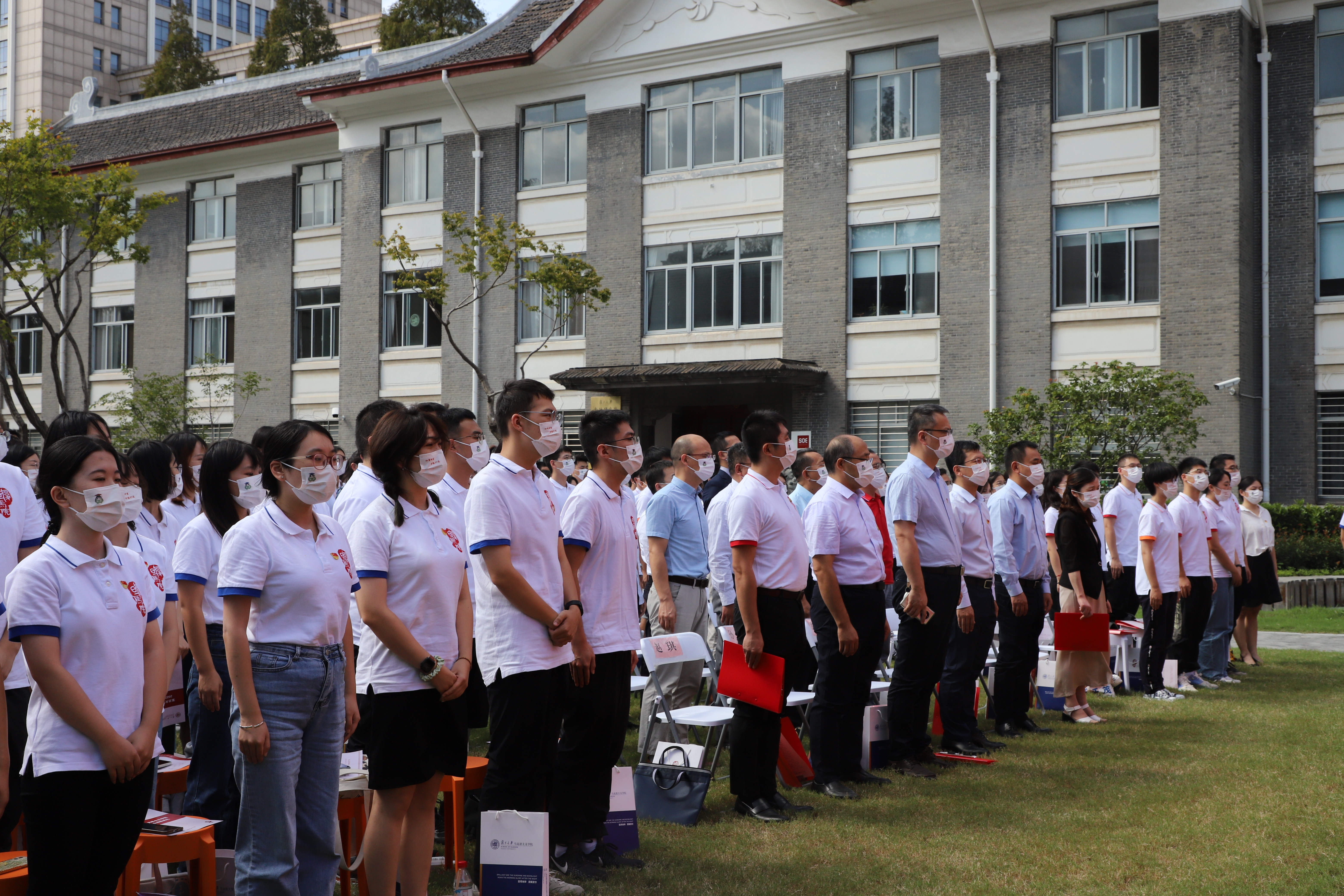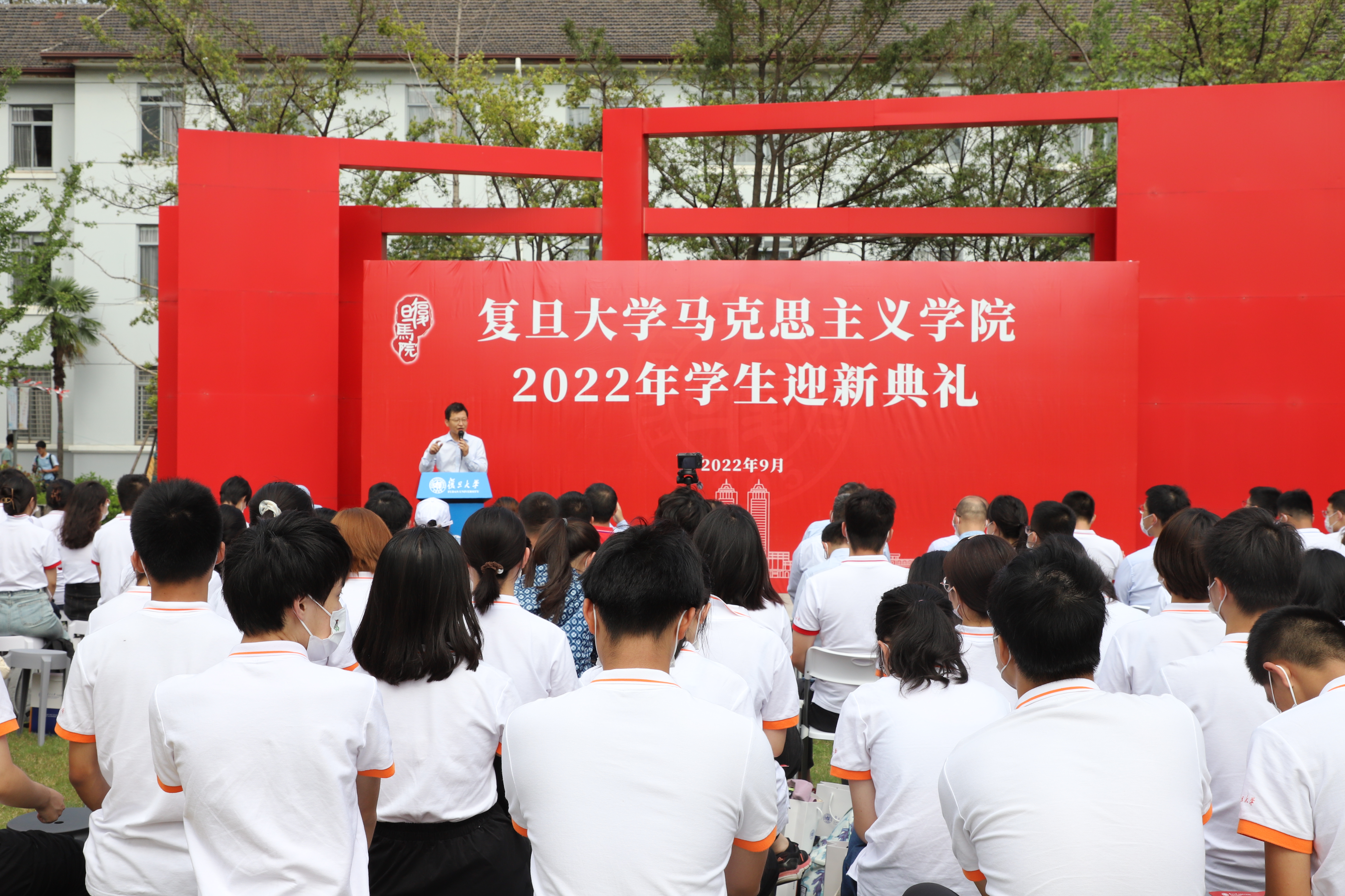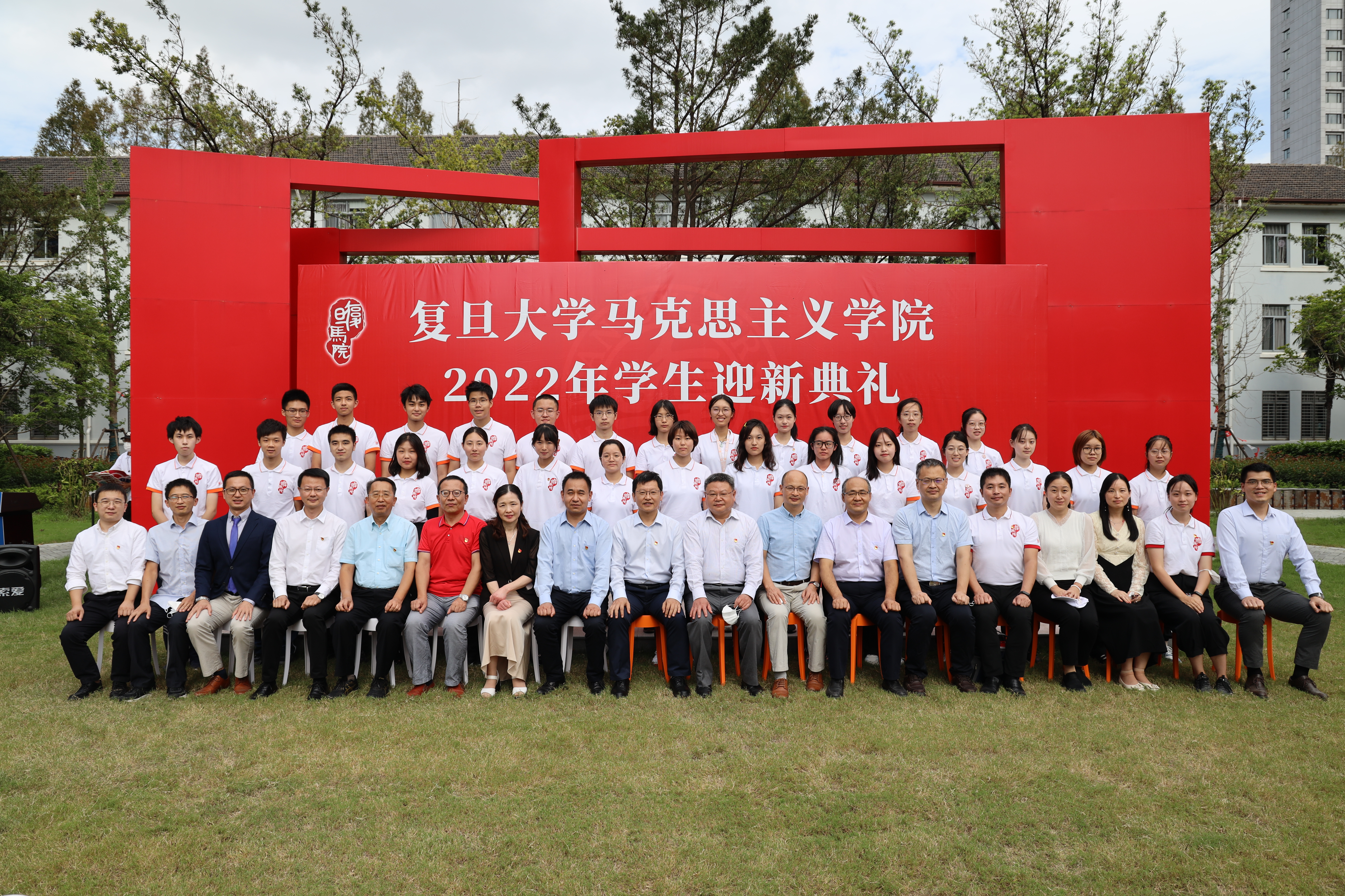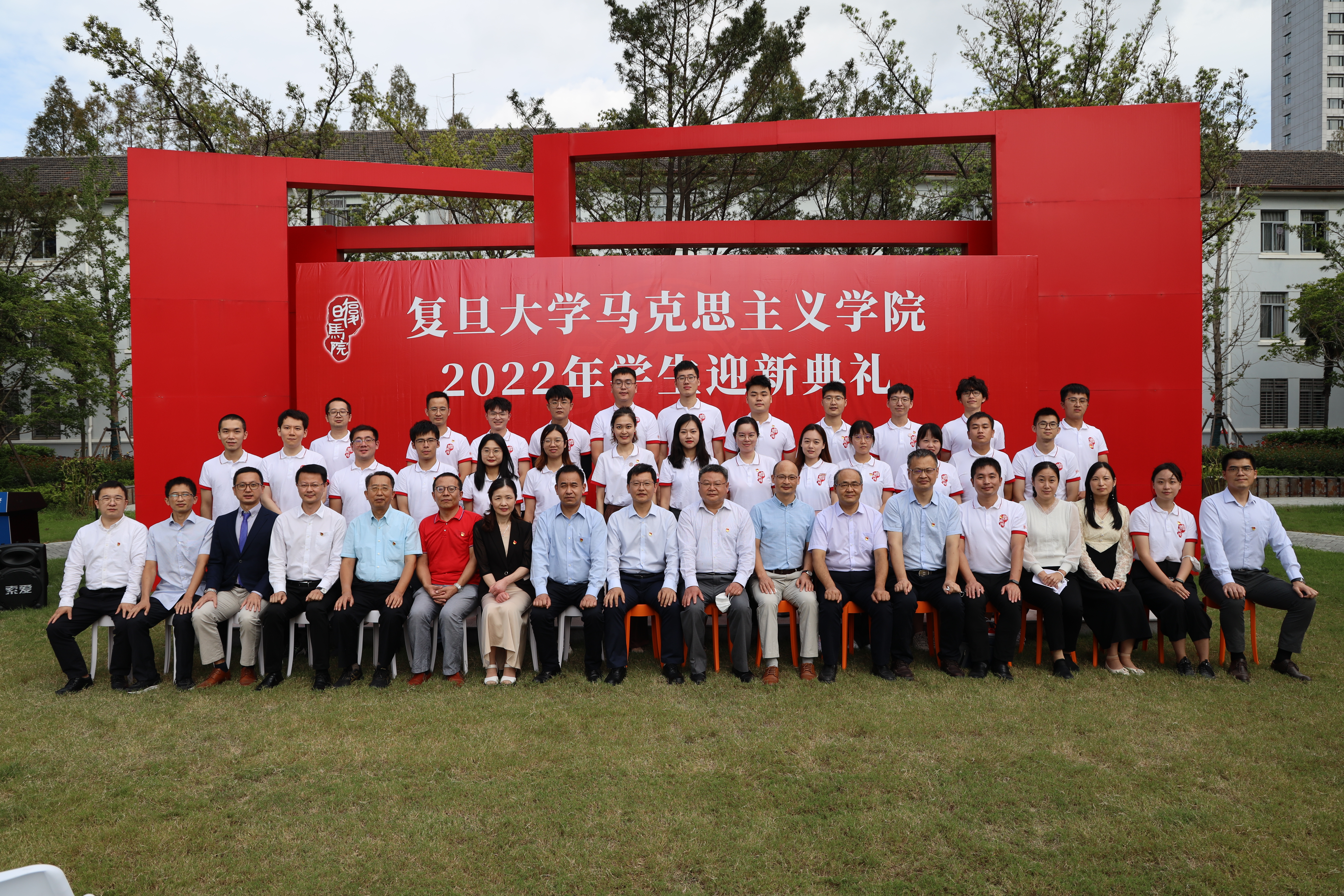 最后,学院领导班子和教师代表为新生代表佩戴院徽,迎新典礼在 色情网 校歌声中渐入尾声。2022级新生与学院老师合影留念,共同开启在复旦马院的崭新学年。