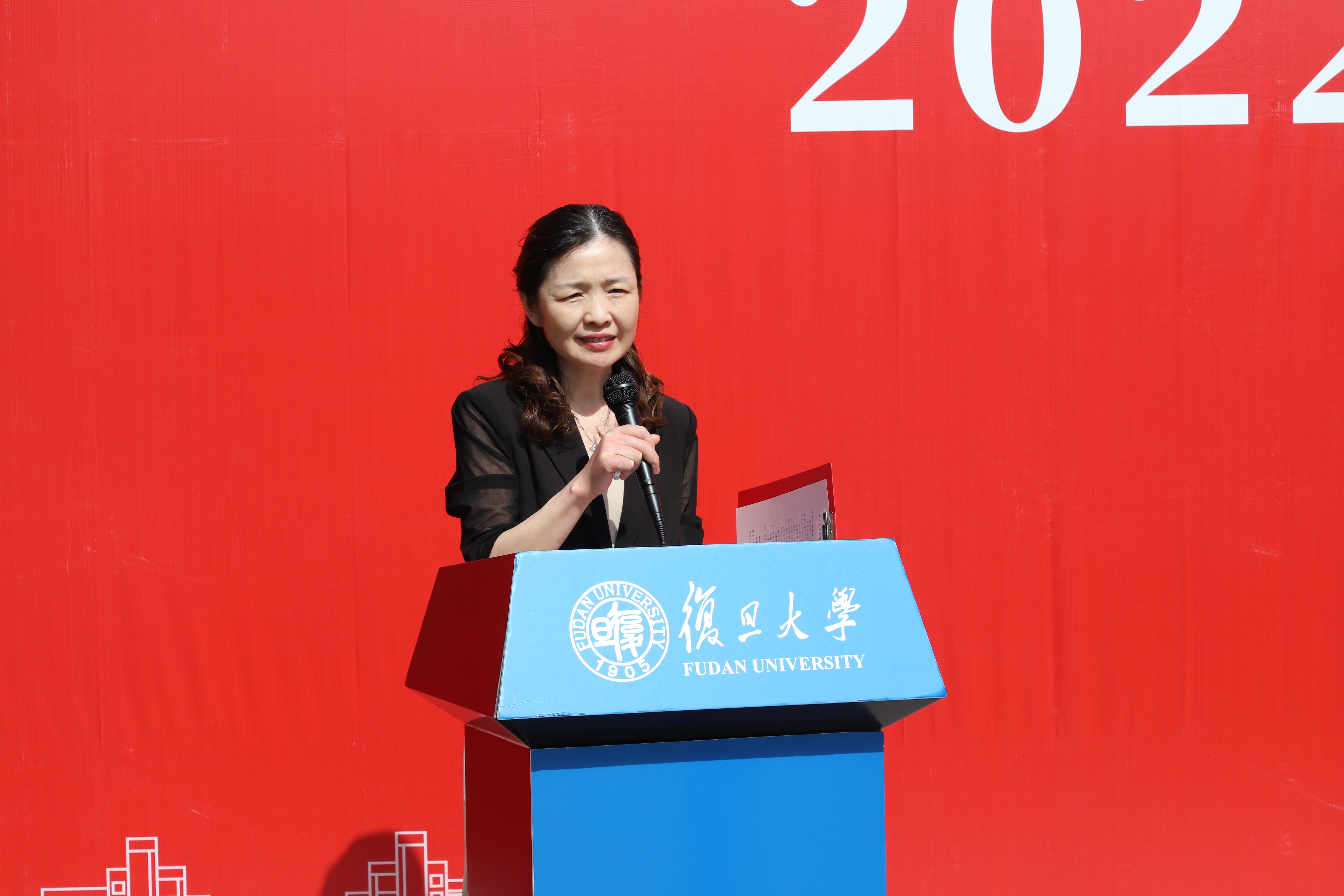 李冉院长代表学院热烈欢迎2022级新同学来到复旦马院,勉励同学们在这座青春的红色加油站中蓄满服务国家的青春能量。李院长通过关于建党和建国的两个故事生动地诠释了马院的红色基因和复旦的光荣传统,点明了两位新生代表发言和董老师讲话所指向的共同主题,即习近平总书记在回信中提到的八字箴言“心有所信,方能行远”。李院长还向同学们提出了三点期望和要求,希望同学们能够掌握马克思主义最先进的思维方法,掌握认识路线这一马克思主义的基本方法论和精髓;培育宽广的胸怀,国之大者的胸怀;掌握一种强大的专业能力,要能写好文章、要能做好宣讲、要能干踏实事、要能有好品质。