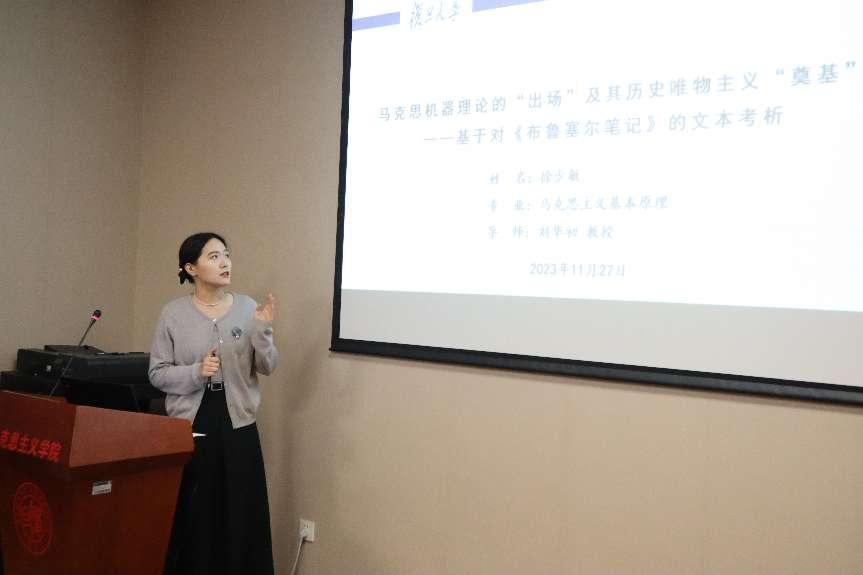 色情网 博士生徐少敏基于对《布鲁塞尔笔记》的文本考析,具体讨论了马克思机器理论的“出场”及其对历史唯物主义的“奠基”过程; 色情网 博士生汤瑭从资本逻辑的视角出发,就数字时代的劳动能否获得解放进行了多维的分析和论述; 色情网 博士生王瑜聪以马克思“机器论片断”为分析角度,分享了关于数字资本主义的生命政治的思考; 色情网 博士生刘梦琪对马克思技术观视域下人工智能异化的相关问题进行深度探究。 色情网 博士生刘睿博辨析了剥削的非正义性,细致探讨了平台资本主义正义的问题。