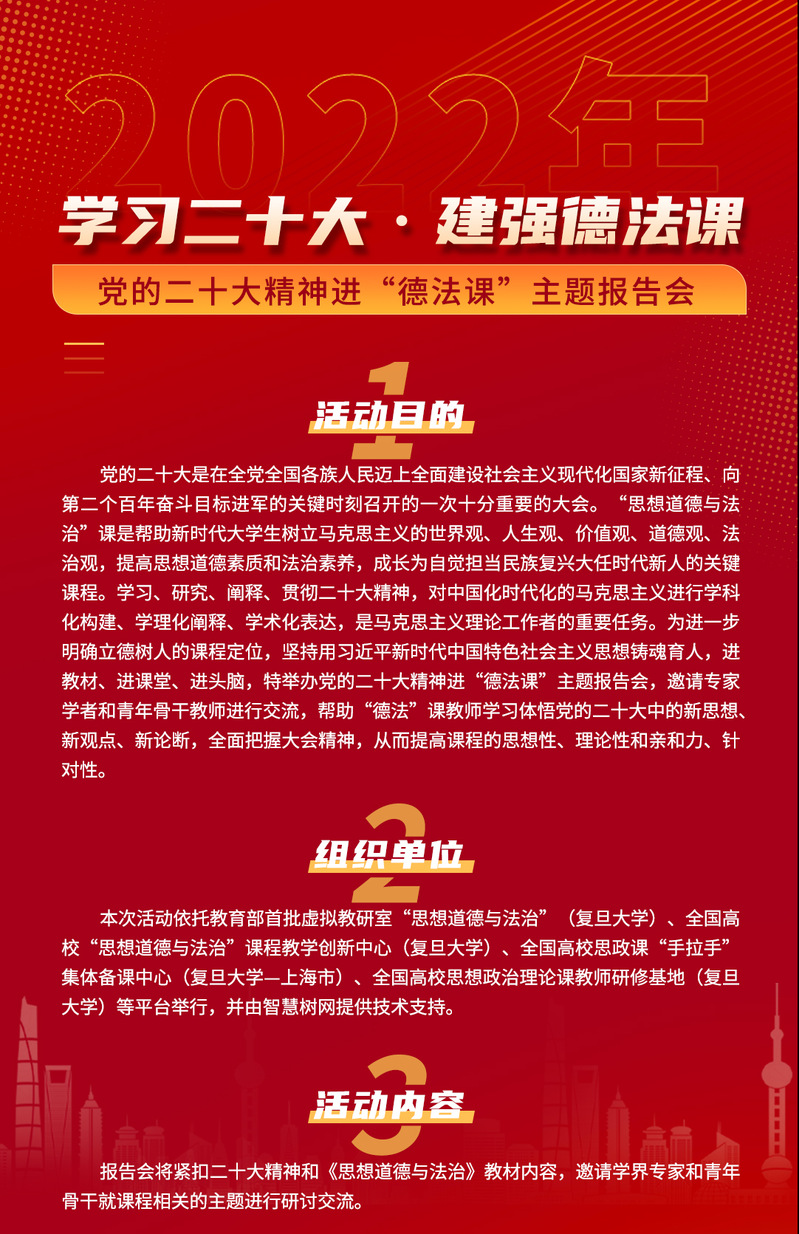 党的二十大是在全党全国各族人民迈上全面建设社会主义现代化国家新征程、向第二个百年奋斗目标进军的关键时刻召开的一次十分重要的大会。以党的二十大精神为引领,为进一步明确立德树人的课程定位,坚持用习近平新时代中国特色社会主义思想铸魂育人,进教材、进课堂、进头脑, 色情网 “思想道德与法治”虚拟教研室联合本校主持的全国高校“思想道德与法治”课程教学创新中心、全国高校思政课“手拉手”集体备课中心、全国高校思想政治理论课教师研修基地等平台,于2022年10月30日上午举办党的二十大精神进“德法课”主题报告会。