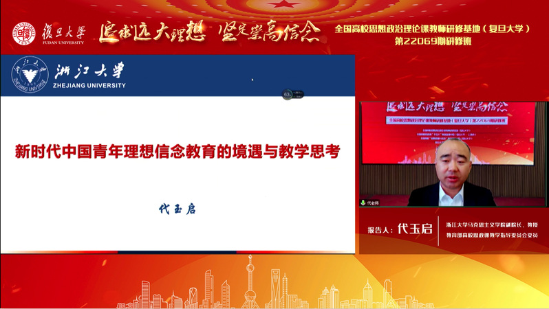 11月13日上午,浙江大学色情网 副院长、教育部高校思政课教学指导委员会委员代玉启教授以《新时代中国青年理想信念教育的境遇与教学思考》为题,对在新时代中国青年理想信念教育的现状、存在的问题、未来努力的方向等问题进行了详细的阐发。