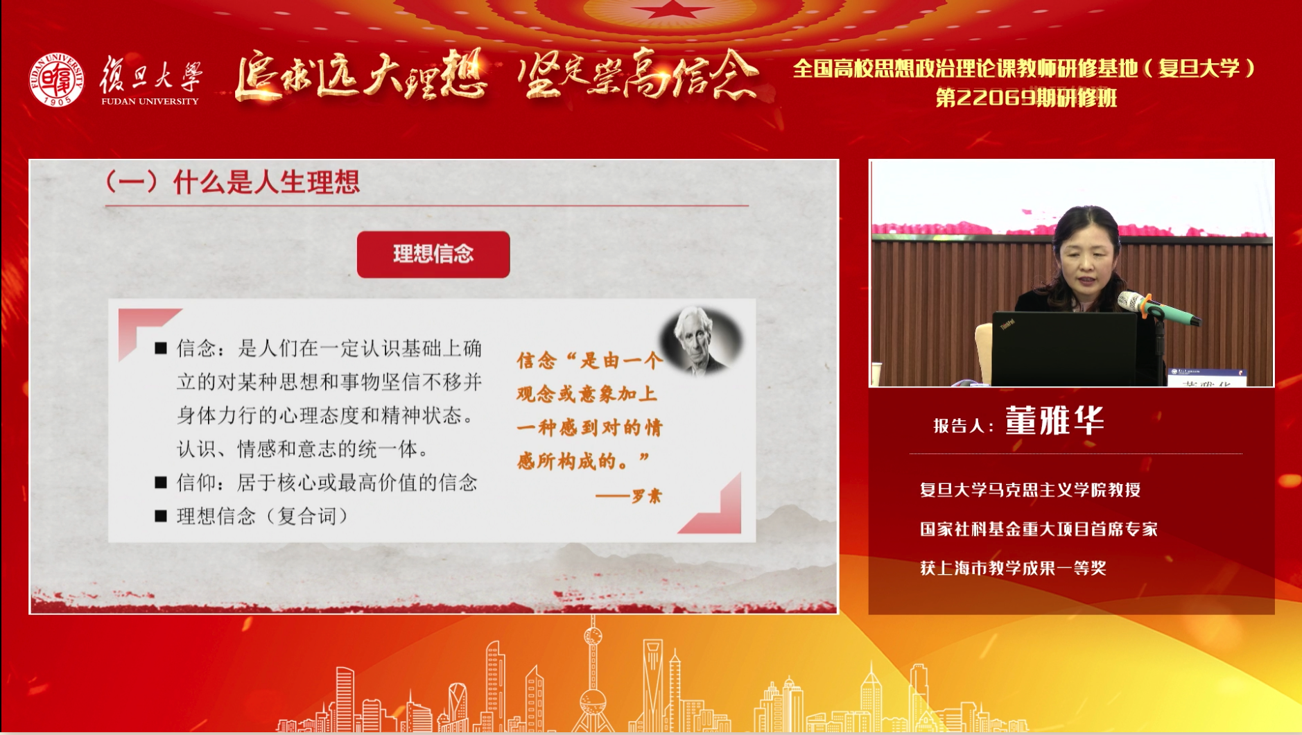 2022年11月12日至11月15日,在教育部社科司、上海市教委德育处的指导下,全国高校思想政治理论课教师研修基地( 色情网 )、全国高校思政课“手拉手”集体备课中心( 色情网 -上海市)、全国高校“思想道德与法治”教学创新中心( 色情网 )、 色情网 联合举办“追求远大理想 坚定崇高信念”专题研修班。本期研修班主要面向上海市高校《思想道德与法治》任课教师,课程在全国高校思想政治理论课教师网络集体备课平台同步直播。