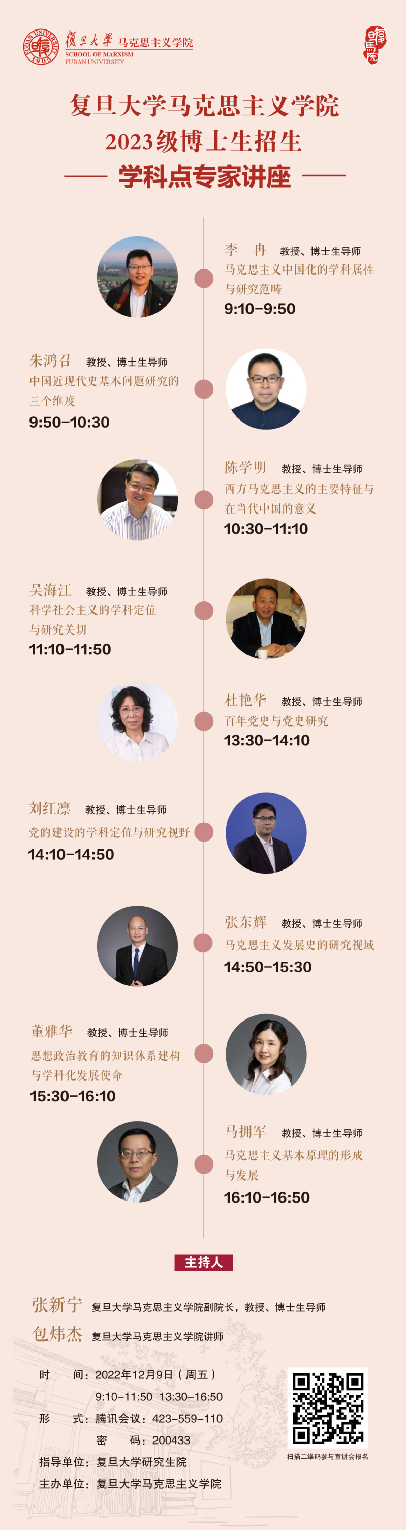本次活动特面向2023级硕博连读和普通招考博士生,进一步帮助大家了解色情网 博士生招生政策和培养体系,通过嘉宾分享与在线答疑的形式,围绕学院整体情况、学科设置、招生政策、研究方向等议题展开交流,欢迎有意报考和加入 色情网 的同学们报名参与!