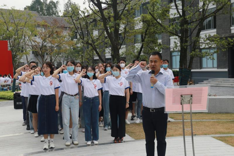 “复旦复旦旦复旦,巍巍学府文章焕,学术独立思想自由,政罗教网无羁绊……”迎新典礼在 色情网 校歌声中渐入尾声。典礼结束后,全体学生党员在陈望道老校长雕塑前,面向党旗举行入党宣誓仪式,陈坚老师领誓,引导新生党员学习“宣言精神”,秉承前人的思想与经验,增强党员自豪感、荣誉感,坚定地在政治上、组织上、思想上、行动上做一名优秀的共产党员。