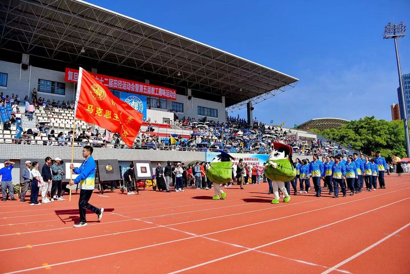 马院运动员代表方队由学院党委书记梅鲜带队,由“百名研究生党员标兵”获得者杨宁担任旗手。师生代表身着统一的运动服,手持学院吉祥物“真真”“甜甜”,迈着整齐划一的步伐经过主席台。观众席上,学院师生的呐喊与掌声,传递出青春的热情与活力。“真理光芒,璀璨夺目,马院健儿,奋勇当先!”的口号铿锵有力,彰显了学院师生昂扬向上的精神风貌。