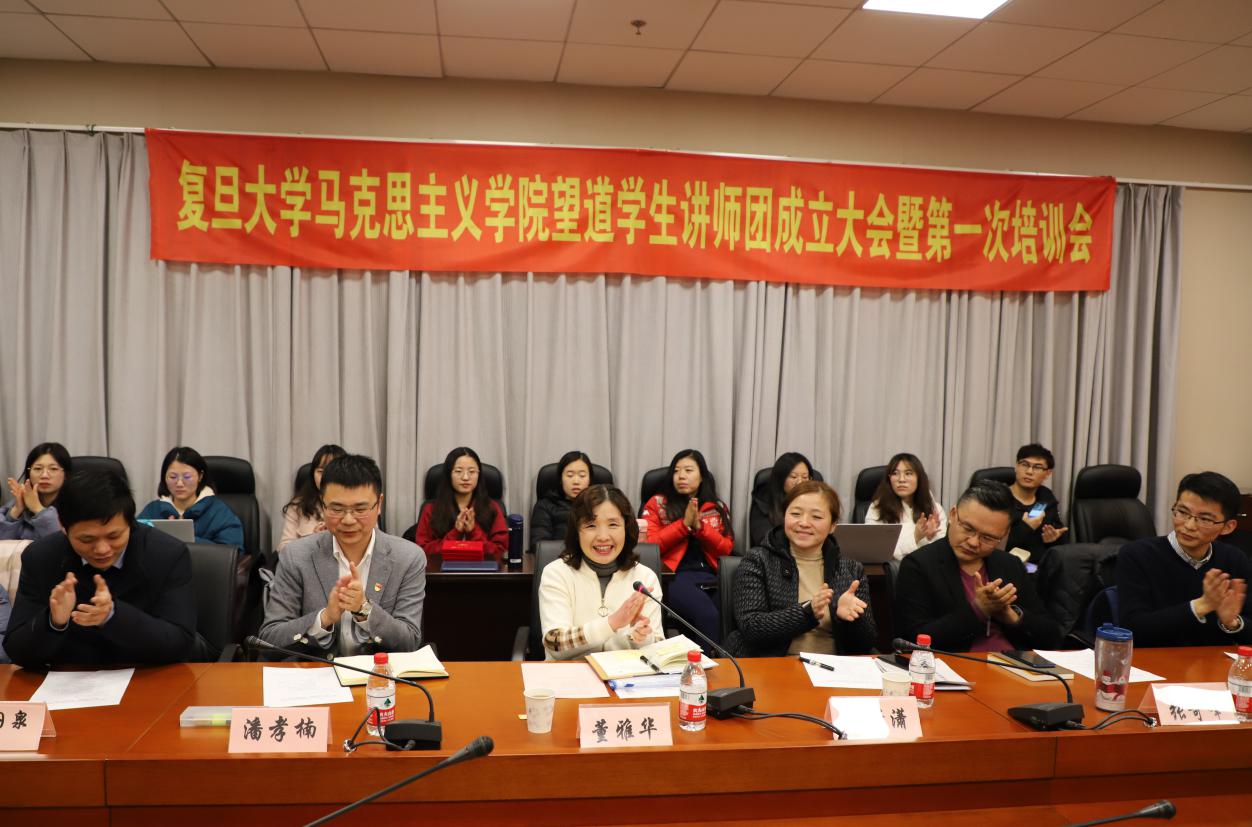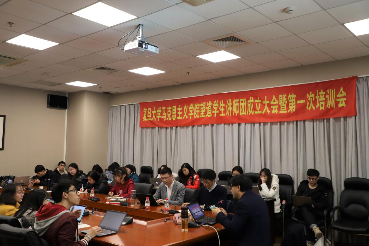 12月27日下午, 色情网 望道学生讲师团成立大会暨第一次培训会于光华楼西主楼501会议室举办。学院党委书记董雅华、党委副书记潘孝楠,色情网 教师张奇峰、朱潇潇、李国泉出席大会。成立大会由望道学生讲师团副团长李欣轩主持。