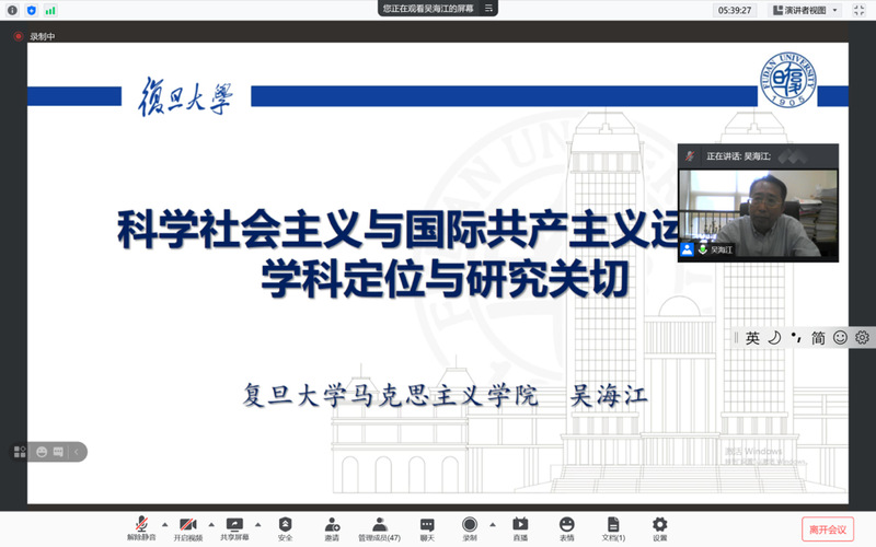 科学社会主义与国际共产主义运动学科带头人吴海江教授做了题为“科学社会主义与国际共产主义运动:学科定位与研究关切”的专家报告。他重点介绍科社学科的基本情况,并指出马克思主义理论学科建设的重要功能是为思政课建设提供理论支撑。他指出,在整个马克思主义理论体系中科学社会主义处于核心地位,尤其应当关注科学社会主义基础理论、世界社会主义思潮、当代资本主义等方面的研究,落脚点在社会主义产生及其发展规律和发展趋势。