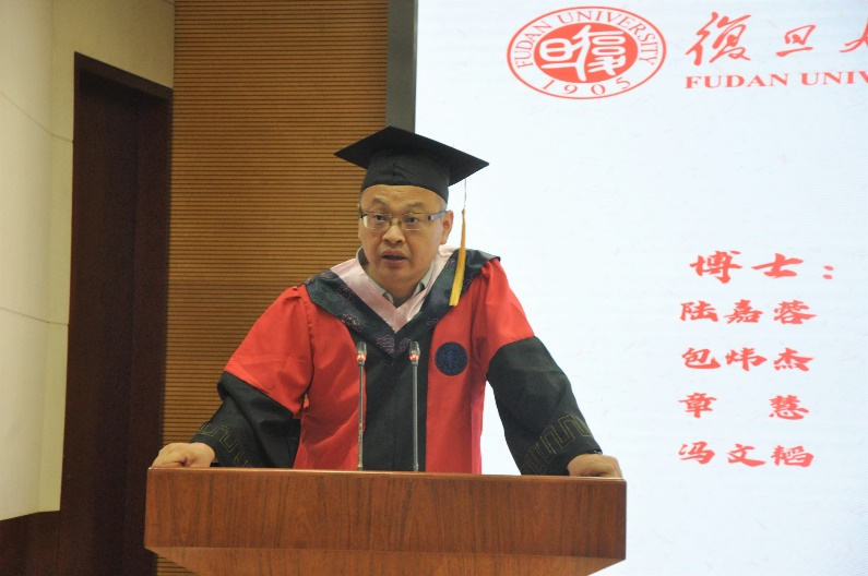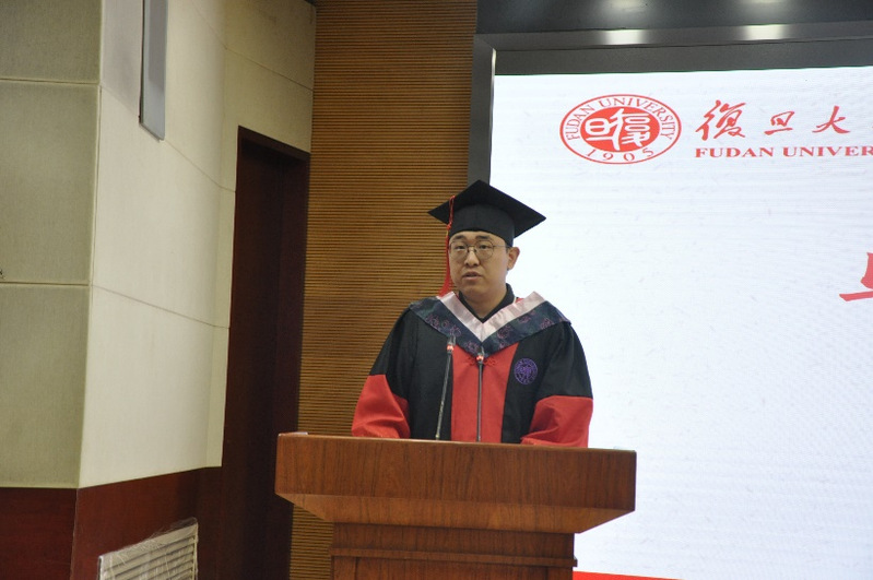 2020届博士研究生代表严哲文同学、2021届硕士毕业研究生代表田甜同学和2021届博士毕业研究生廉国强同学分别作为毕业生代表发言。他们或者学术的高峰上勇敢攀登,用诚挚热情的态度为坚定的理想信念做注脚;或者走向基层就业岗位,以牺牲奉献的精神将勇担责任使命落到实处。即将踏上新征程的他们,怀着对学院同样的依依惜别之情,展现出传承和弘扬“团结、服务、牺牲”的复旦精神以及勇敢迎接未来挑战的信心和决心。