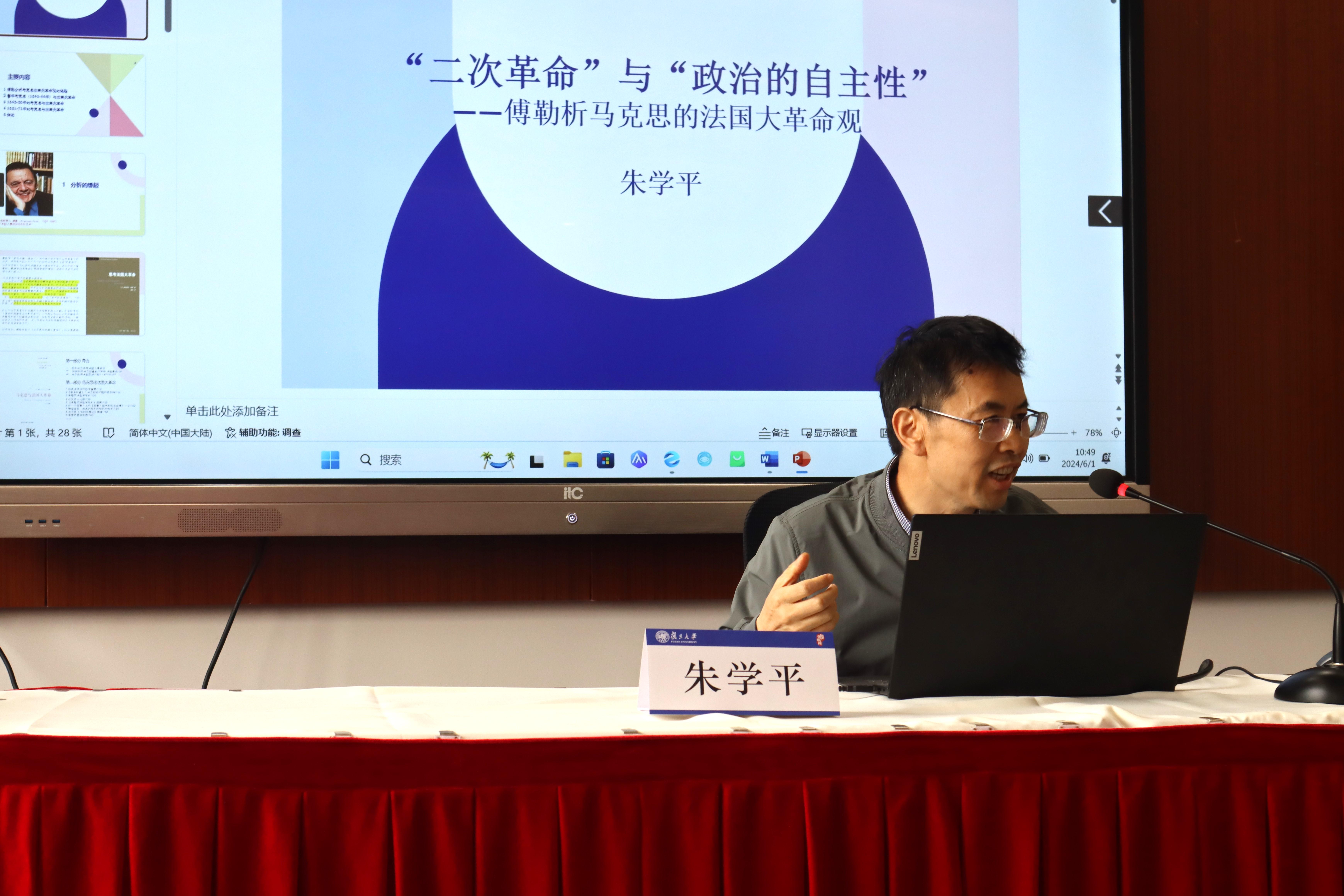 首先,西南政法大学的朱学平教授进行了题为“傅勒析马克思的法国大革命观”的发言。朱老师指出,法国著名历史学家傅勒专门搜集了马克思本人关于法国大革命的论述并从二次革命与政治的自主性两个角度出发,分三个阶段对马克思的大革命观进行了较为深入全面的剖析;而傅勒的分析恰恰印证了我们今天仍需不断“回到马克思”的重要性和必要性。