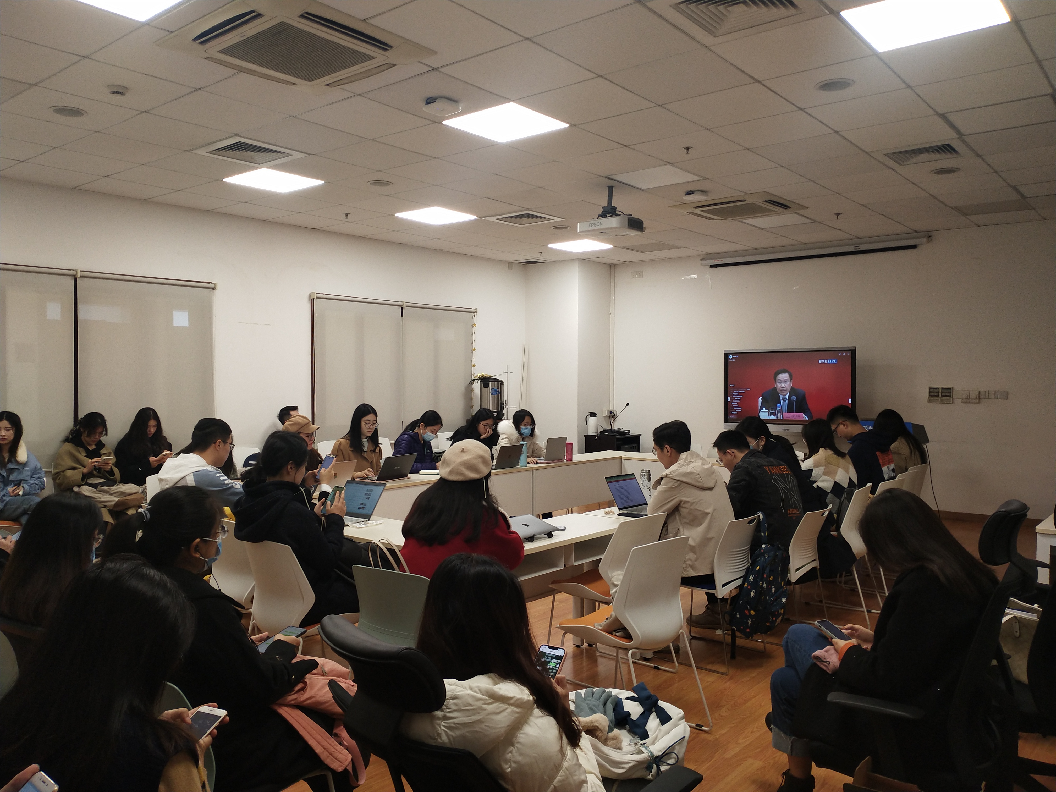 学院学生代表集中收看新闻发布会