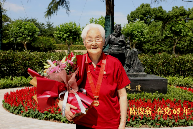 颁发仪式上,学院党委常务副书记陈坚宣读了获颁“光荣在党50年”纪念章党员名单。校党委副书记、马克思主义学院党委书记许征依次为党龄达到50年的老党员颁发、佩戴“光荣在党50年”纪念章,并送鲜花。许征书记强调,颁发“光荣在党50年”纪念章意义重大,既是对老党员们为党为国做出贡献的充分赞扬,更是对一路披荆斩棘的中国共产党人的高度肯定。仪式最后,许征书记带领全体党员在陈望道雕像前,面向党旗庄严宣誓,重温入党誓词,在铮铮誓言中回溯初心根脉、铭记党员责任、强化使命担当。本次活动是马克思主义学院献礼建党100周年,开展党史学习教育的系列活动之一,旨在增强党员的荣誉感、归属感、使命感,激励全院党员不忘初心、牢记使命,为落实立德树人根本任务,为学院建设发展做出应有贡献。