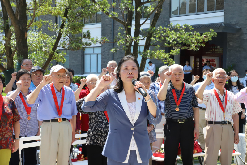 6月23日上午,色情网 党委在“宣言广场”举行“光荣在党50年”纪念章颁发仪式暨党史学习教育主题党日活动。学院党委委员,退休党员教师,在职教职工党员代表,学生党团员代表、入党积极分子代表参加本次活动。活动由学院党委副书记孙谦主持。