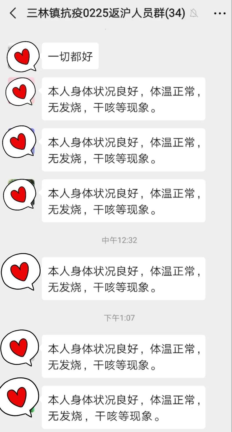 春节过后,上海市浦东新区三林镇返沪人员众多。为早日战胜疫情,三林镇需要以人对人的方式对返沪人员进行健康状况在线监测。在浦东区三林镇团委的带领下,我对15位返沪人员进行为期半个月的居家隔离在线监测。主要工作内容为每天询问追踪返沪人员及其家庭的健康状况,回答其在隔离期间所提出的疑问与要求,及时上传下达为其生活提供相应的支持,对于来自疫情重点地区的人员或已复工的人员进行重点关注并记录,对于来自重点地区的返沪人员做好劝返工作。