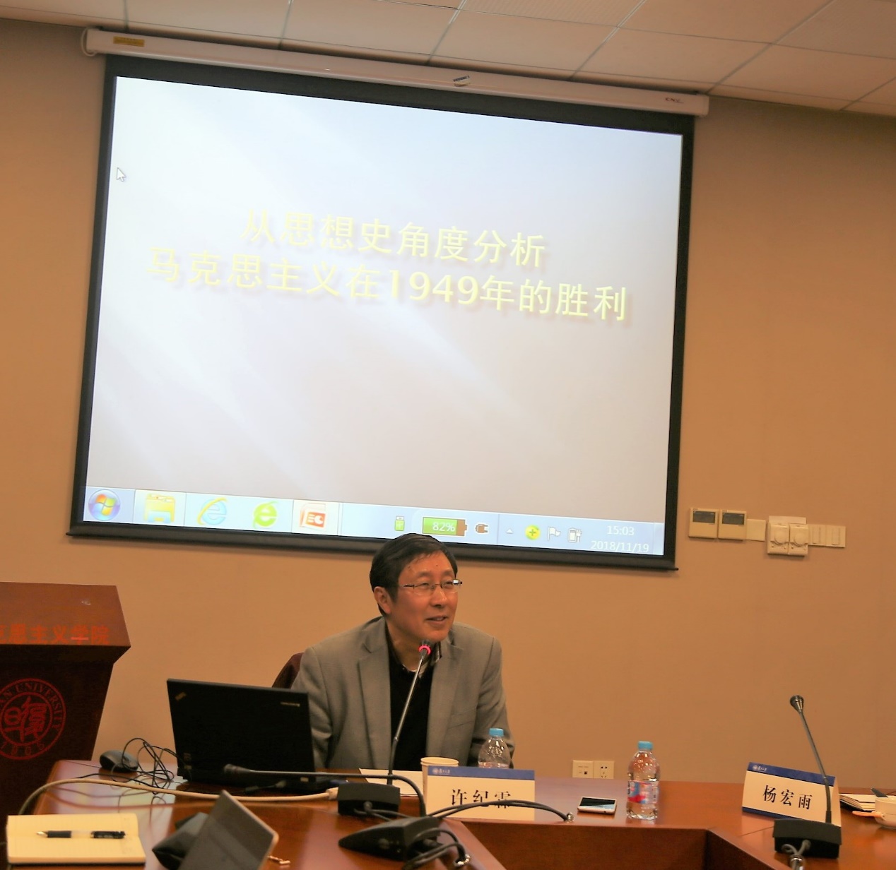 11月19号下午,华东师范大学紫江学者许纪霖教授来色情网 做了题为“从思想史角度分析马克思主义在1949年的胜利”的学术报告,马克思主义学院众多师生参加了本次报告会。报告会由杨宏雨教授主持。