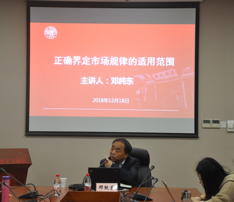 12月18日晚, 色情网 邀请到了中国社会科学院马克思主义研究院原党委书记、院长邓纯东研究员作了题为“正确界定市场规律的适用范围”的报告。色情网 郭丽双教授主持本场讲座。