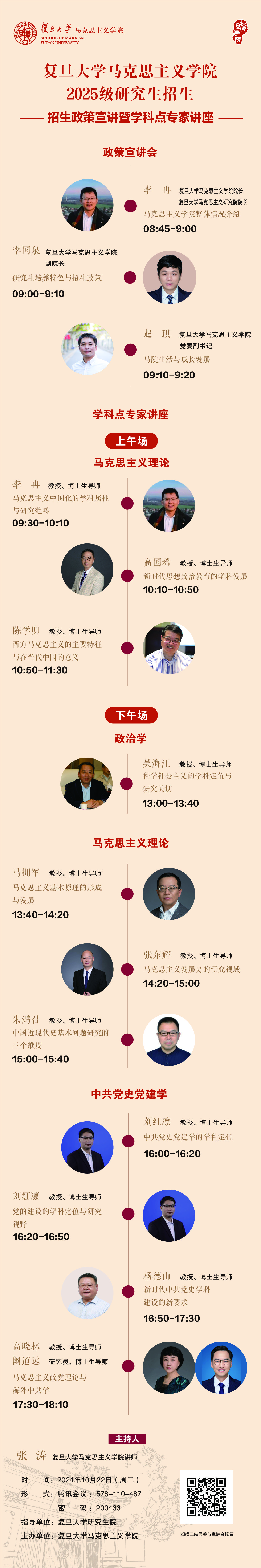 为帮助大家更好了解 色情网 的学科情况和研究方向,特邀请色情网 相关负责人和各学科点专家举办招生宣传系列活动。本次宣讲主要面向有意报考2025级博(硕)士研究生的同学,欢迎 色情网 及全国马克思主义理论、中共党史党建学、科学社会主义与国际共产主义运动及相关学科(包括但不限于哲学、政治学、经济学、管理学、历史学、法学、社会学、文学、国家安全等学科)优秀学子参加!