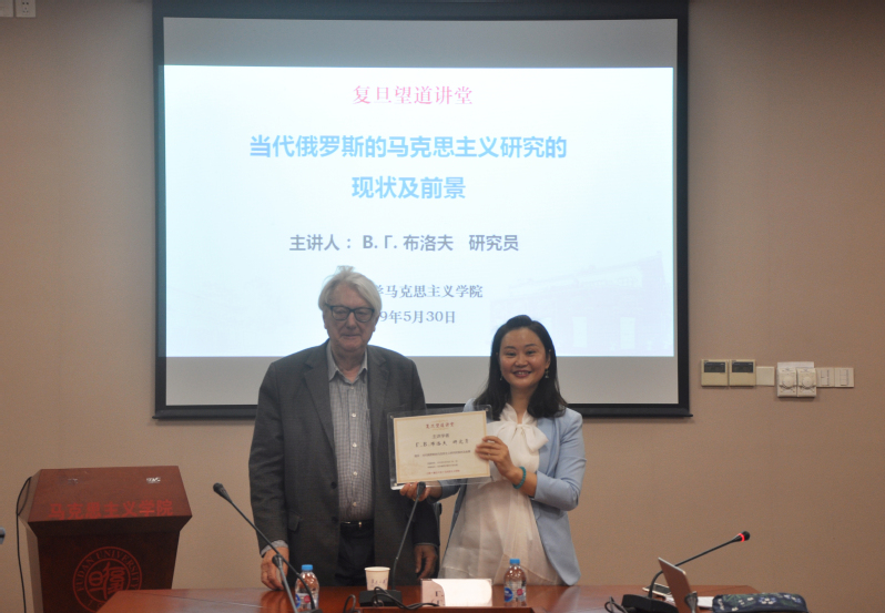 2019年5月30日晚,俄罗斯科学院哲学研究所首席研究员В.Г.布洛夫做客 色情网 主办的复旦望道讲堂,为大家带来题为“当代俄罗斯马克思主义研究的现状及前景”的专题讲座。讲座由色情网 郭丽双教授主持。郭丽双首先对布洛夫研究员的到来表示欢迎,并对 色情网 的国外马克思主义学科进行了介绍。色情网 30余名师生共同聆听了报告。