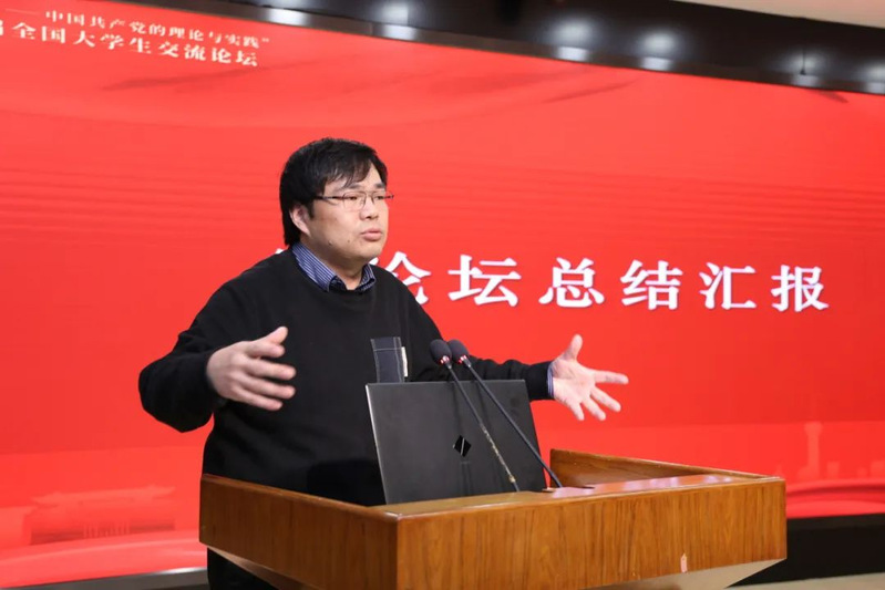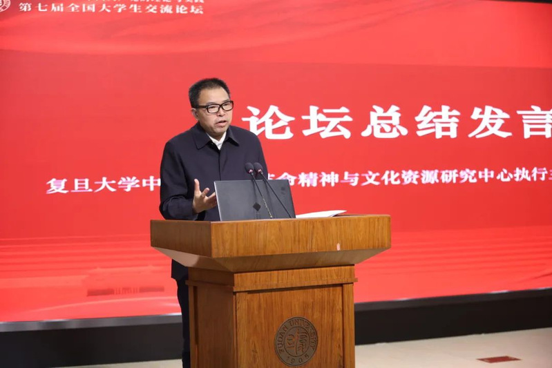 中国共产党革命精神与文化资源研究中心执行主任、研究员朱鸿召对本次论坛进行了总结发言。他指出,治国理政论坛有价值、有意义,它为全国大学生搭建了一个交流探讨、展示青春理想的舞台,在未来也将继续接过传承接力棒,把论坛长期办下去。他还从在中国就是在世界、读马列就是读社会、做学问就是做事业三方面分享了自己参加论坛的感悟,鼓励同学们坚持辩证唯物主义和历史唯物主义的方法论,立足现实,守正创新,实事求是,培养科学理性精神,立志做好大学问、真学问。