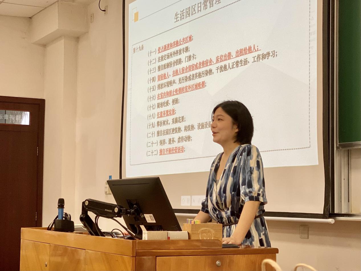 在图书馆资源教育之后,沪东高校派出所陆英杰警官围绕人身安全、财产安全、网络安全、寝室安全等,开展了生动全面的安全教育,有效提升了同学们对于安全教育的认知。