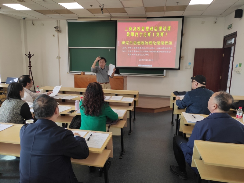 本次研究生思想政治理论课课程组教学比赛(复赛)是上海市教委组织开展的高校思想政治理论课教学比赛的组成部分。参赛教师根据课程要求、自身教学特点、学校特色,结合中国特色社会主义的理论与实践做了精彩纷呈、生动活泼、深刻明晰的教学展示,最后选拔出五位教师进入决赛。本次活动展现了思政课教师专业扎实的教学基本功,彰显了思政课教师与时俱进、以生为本的教学理念。