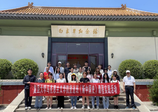 建党百年之际,为重温中国共产党“赶考”精神, 色情网 望道班于7月2日开始了以 “重走赶考路”为主题的《新中国史》实践课外出学习考察活动,深入学习贯彻习近平新时代中国特色社会主义思想,重温共产党人建国之初“赶考”精神,扎实开展新中国史、党史学习教育。学习考察途中,望道班同学表示:新中国史七十年,其精神内涵极其丰富,课堂里主要是用脑学习,走出课堂,走进现实,才真正体验到用“心”用“情”学习的重要性。寻访革命先辈的足迹,将文章写在中国大地上!