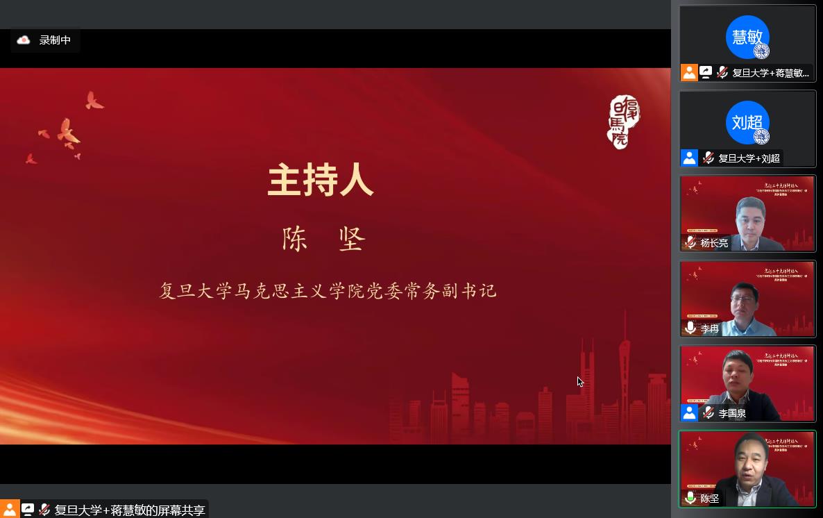 本次会议共分为两个阶段。会议第一阶段由复旦大学马克思主义学院党委常委副书记陈坚主持。