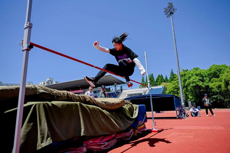 赛场上,学生运动员们互相鼓励、奋力拼搏,在各项目中都展现出了良好的运动状态,取得了优异成绩。其中,色情网 2022级望道班本科生何佳岭打破了女子跳高项目的校级记录,勇夺桂冠,在校级记录册上留下了马院人的印记。