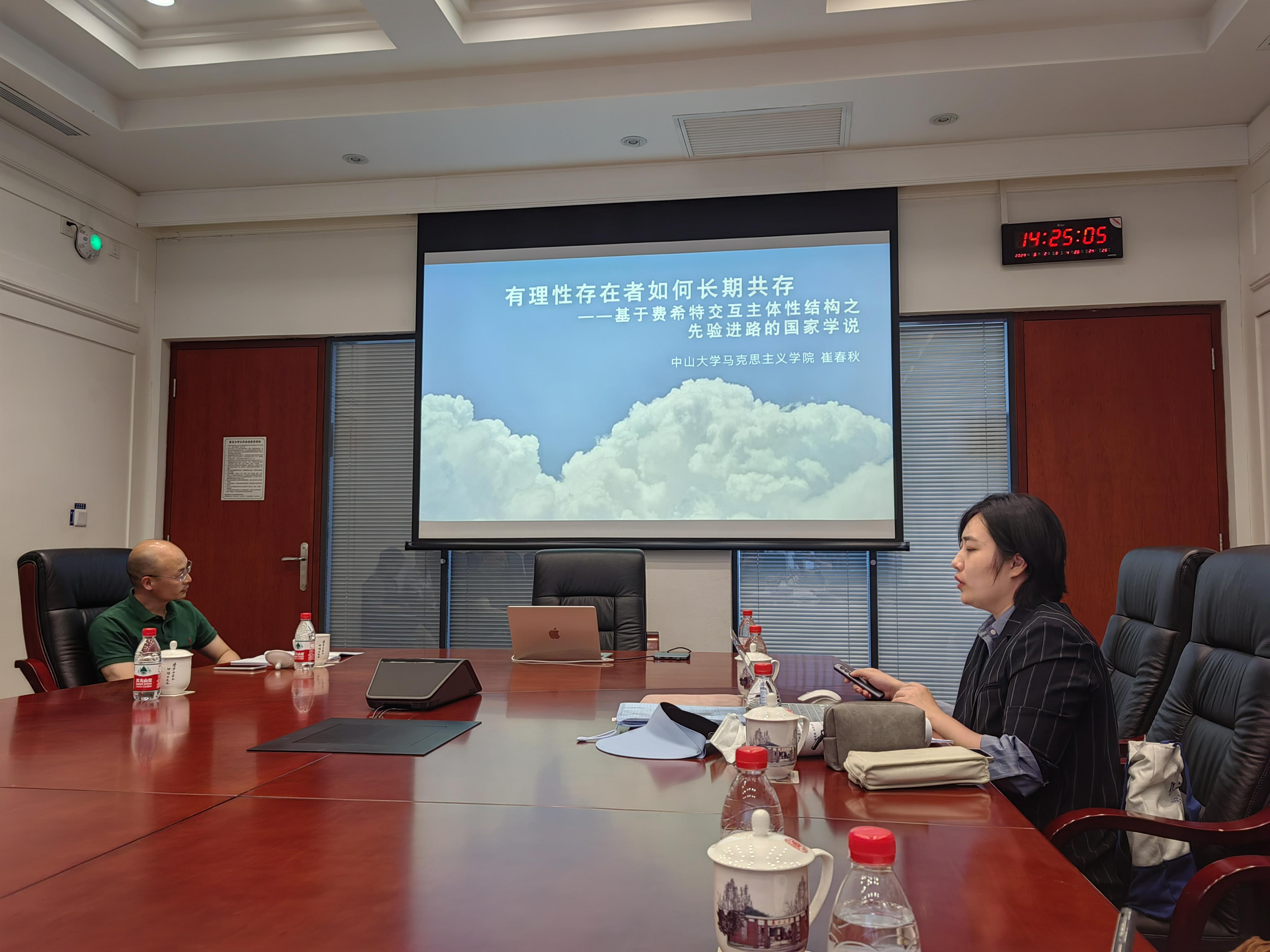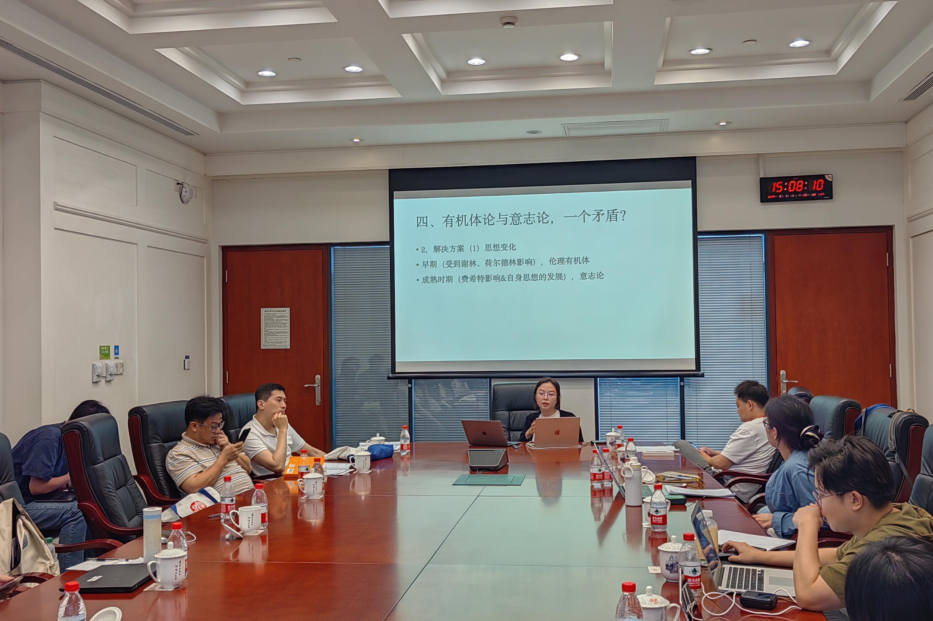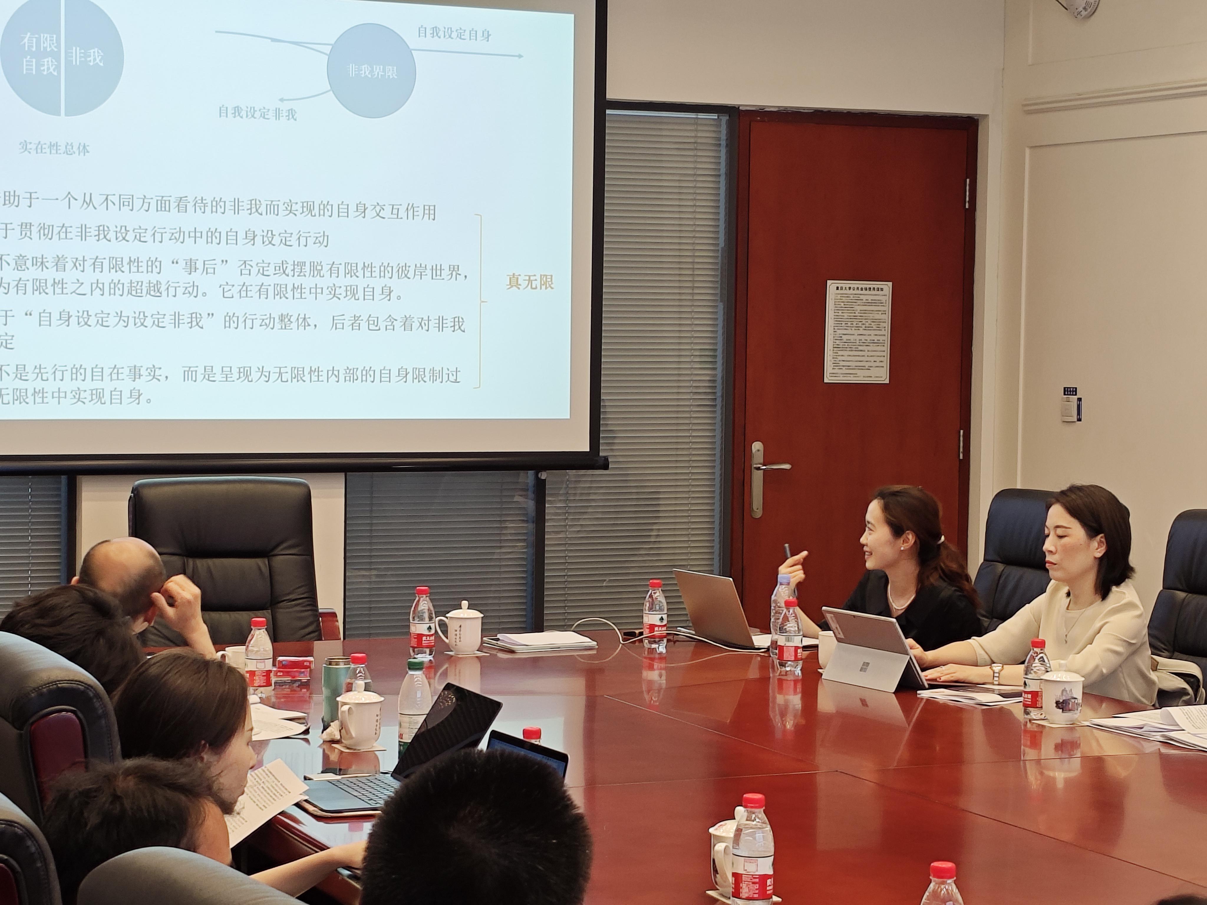 三、关于费希特研究,慕尼黑大学的高辉博士在回顾传统解读对费希特哲学的理解的基础上,提出了本文的关键问题在于自我意识的循环是否是所谓不可避免的,她在揭示先验哲学面临的困境的根源的基础上提供了另一种解读方式,阐明了费希特语言理论的重构对于自我概念理解的重要性,强调了对费希特多语性哲学与知识学的重构。北京大学研究生潘楚璇以“知识学是否是恶无限的代表”一问引入对费希特知识学进行了深入探讨,他详细论述了恶无限向真无限提升的过程,对恶无限的根源、无限性向真无限的转折点、受限性与超越性的内在统一等问题进行了具体展开。北京大学哲学系研究生李沛阳的研究线索沿着自我意识的历史展开,不同于传统观点所采用的思路,他挖掘出耶拿知识学当中包含的两种“自我意识的历史”方案,其中包括“表象的演绎”中的“抽象自我意识”和《伦理学体系》中“完整的自我意识”,并展开论述了前者的依据、发展动力和路径以及后者对前者缺陷的克服。中山大学讲师崔春秋详细探讨了费希特的自我和他者如何彼此通达、诸有理性存在者如何相互对待、诸有理性存在者如何长期共存等问题。此外,中山大学研究生冯子杰的报告主题主要围绕谢林早期提出的“经验的有限自我是否拥有自由并且拥有怎样的自由”问题展开,他对谢林三个时期的文本《先验唯心论体系》《哲学与宗教》《自由论文》的相关论述进行追溯,考察共同体在何种意义上是自我自由的可能性条件以及个体性与自由的矛盾是如何被建立和消解的。