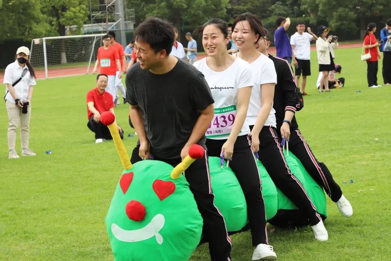 在教职工趣味运动会环节,学院工会组织17名教职工参加了全部的趣味运动会比赛项目,在抱球接力、毛毛虫竞速、托球接力、投篮比赛等项目中都有着色情网 老师的身影。大家身着统一的服装,全力以赴、接续配合,比赛现场掌声、笑声、欢呼声此起彼伏。